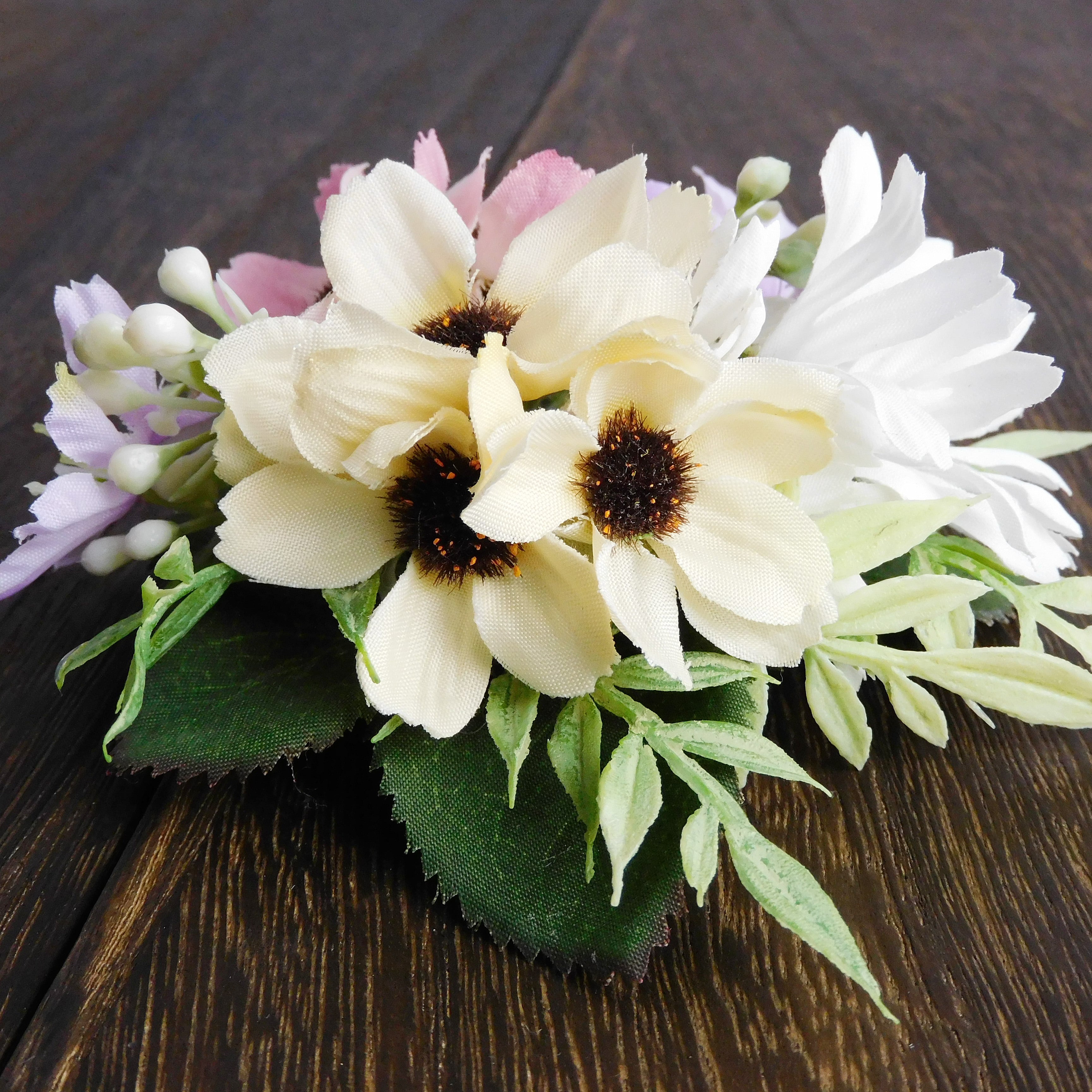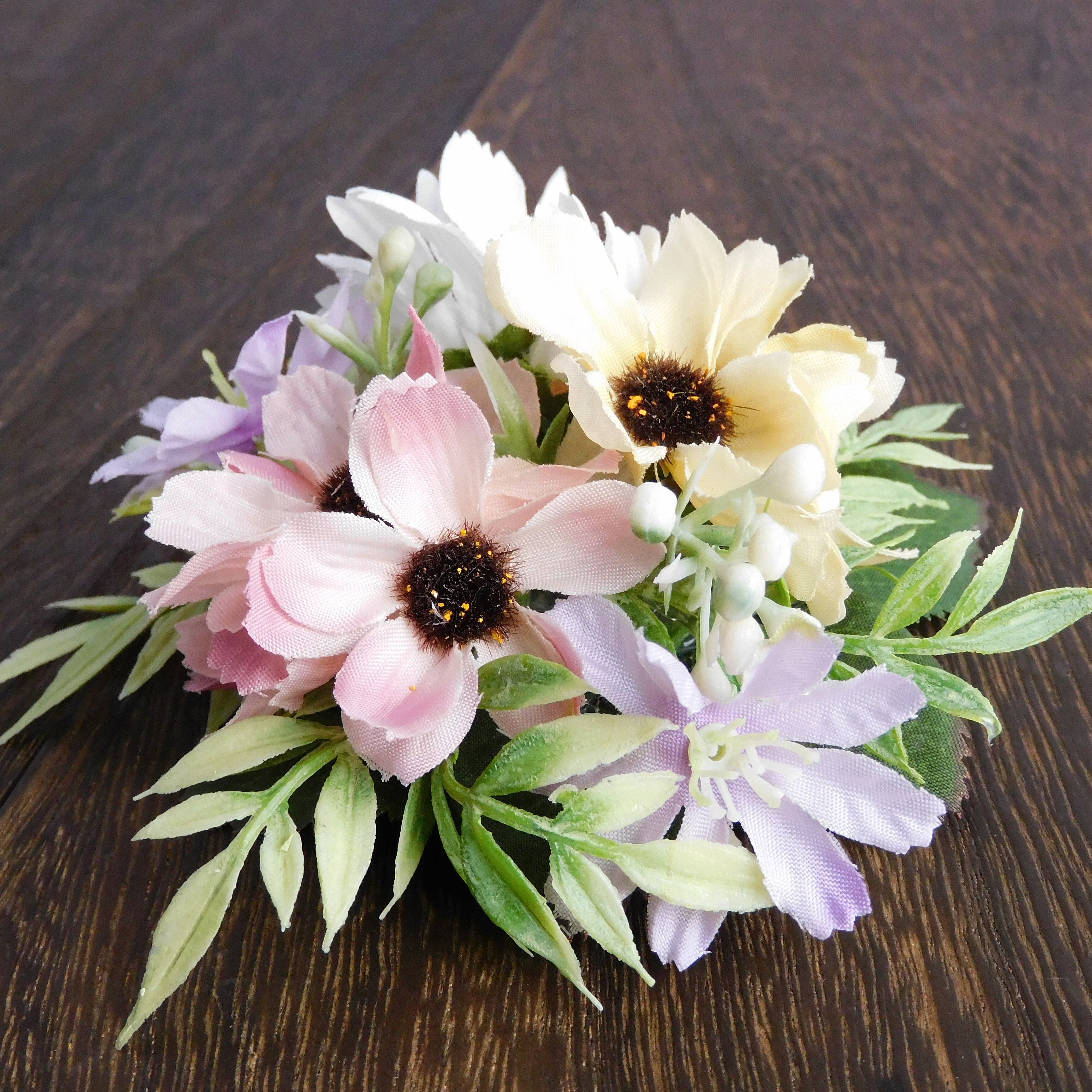 淡い色合いのコスモスを使った可愛らしいブローチです。