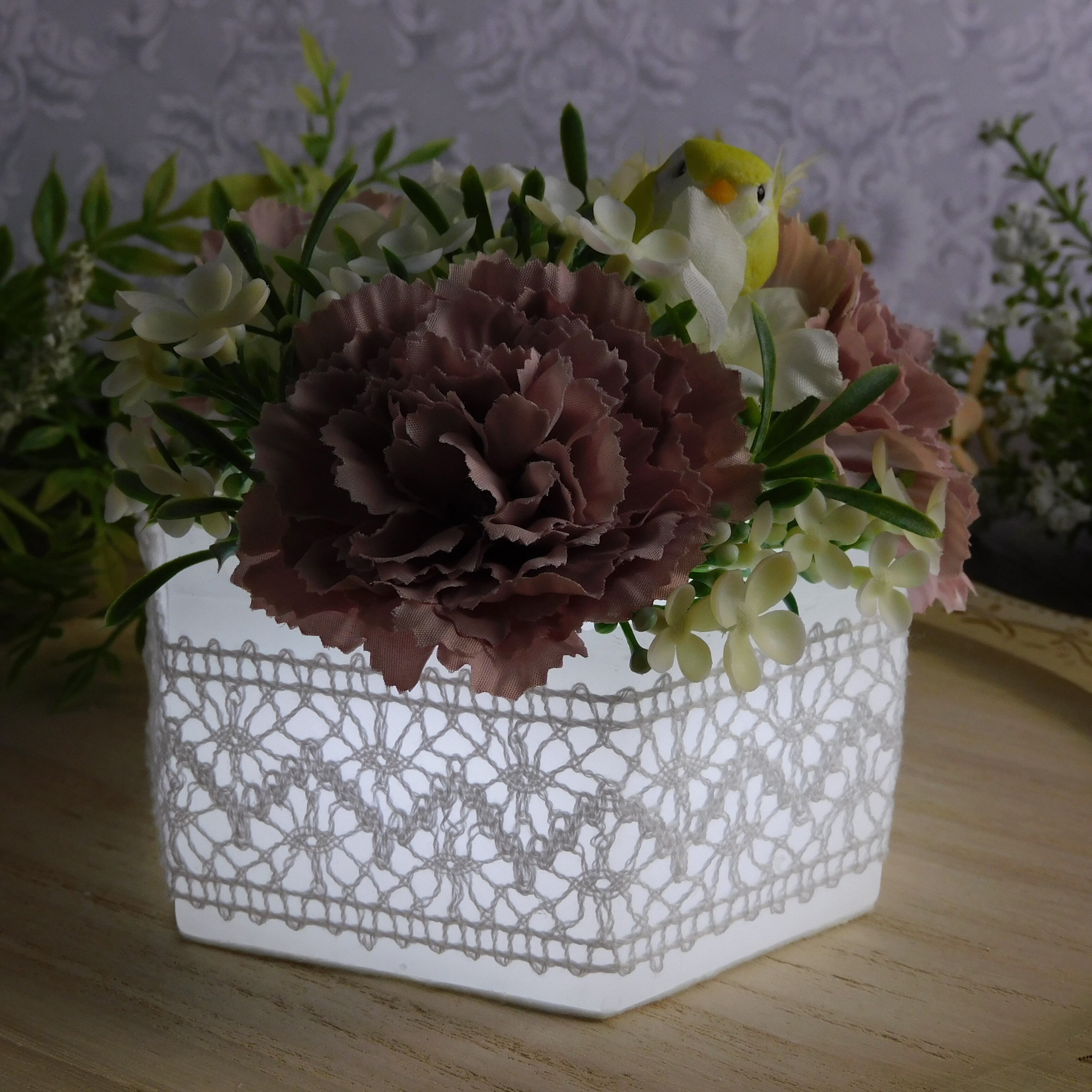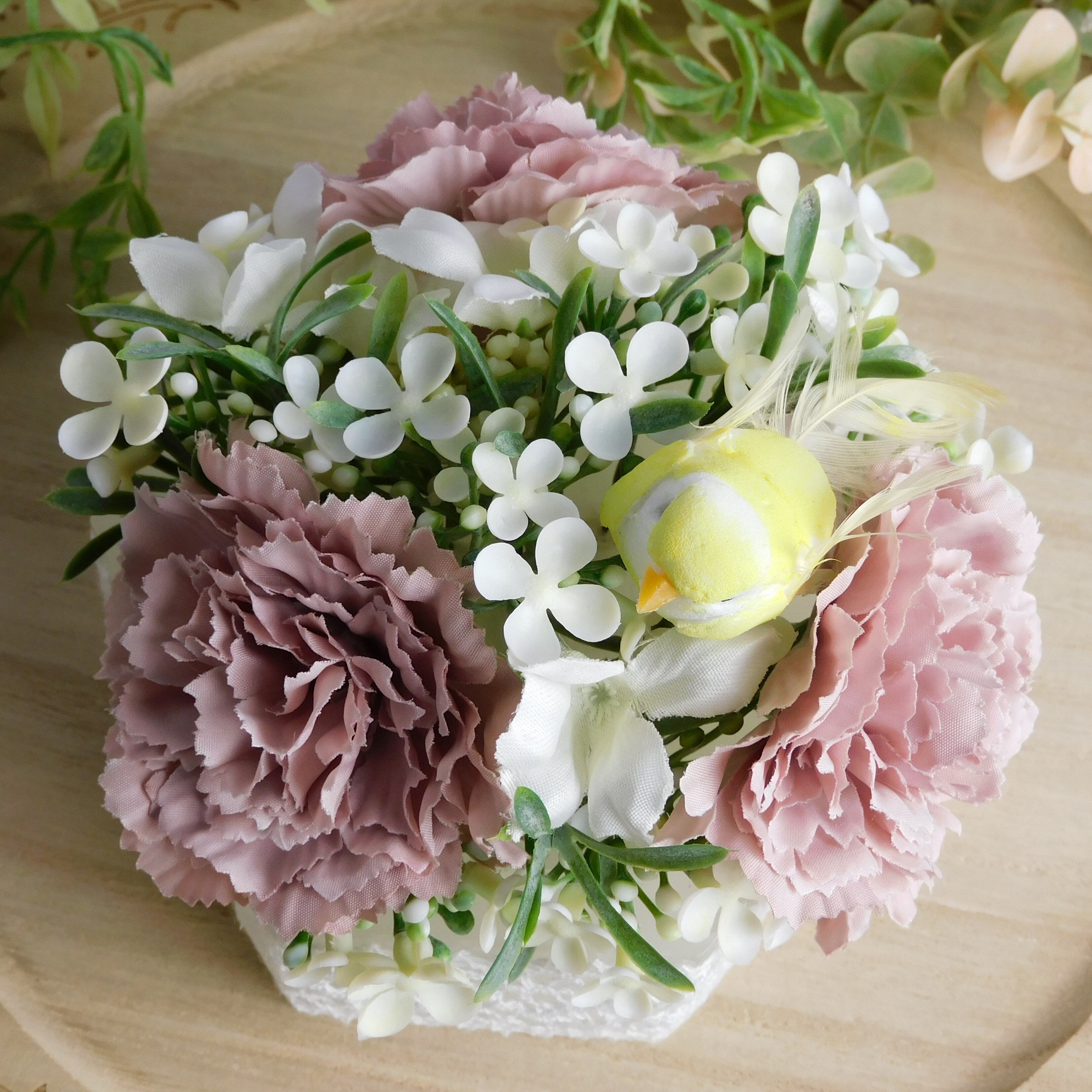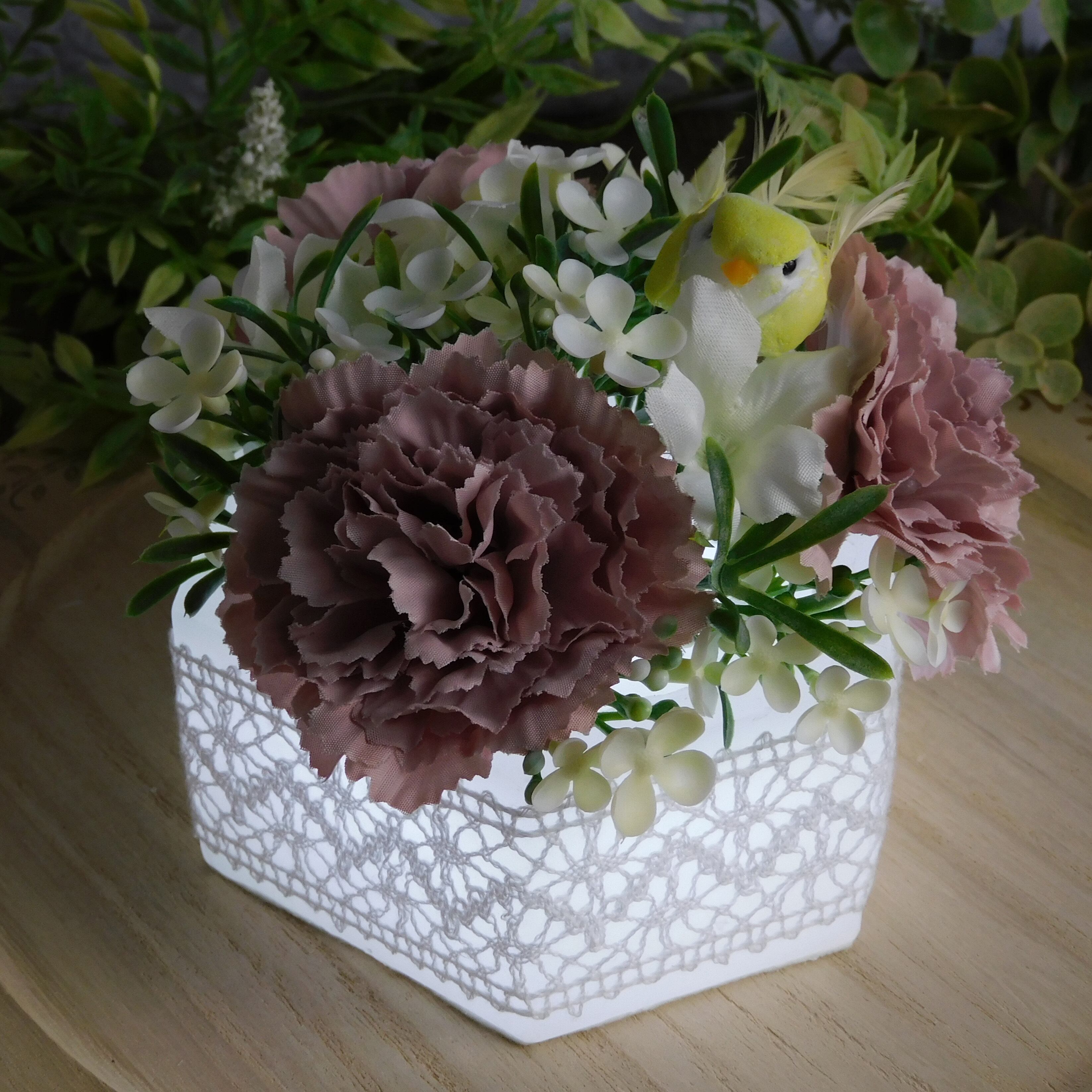可愛らしいカーネーションに小さな小鳥を添えてアレンジしたルームライトです。
